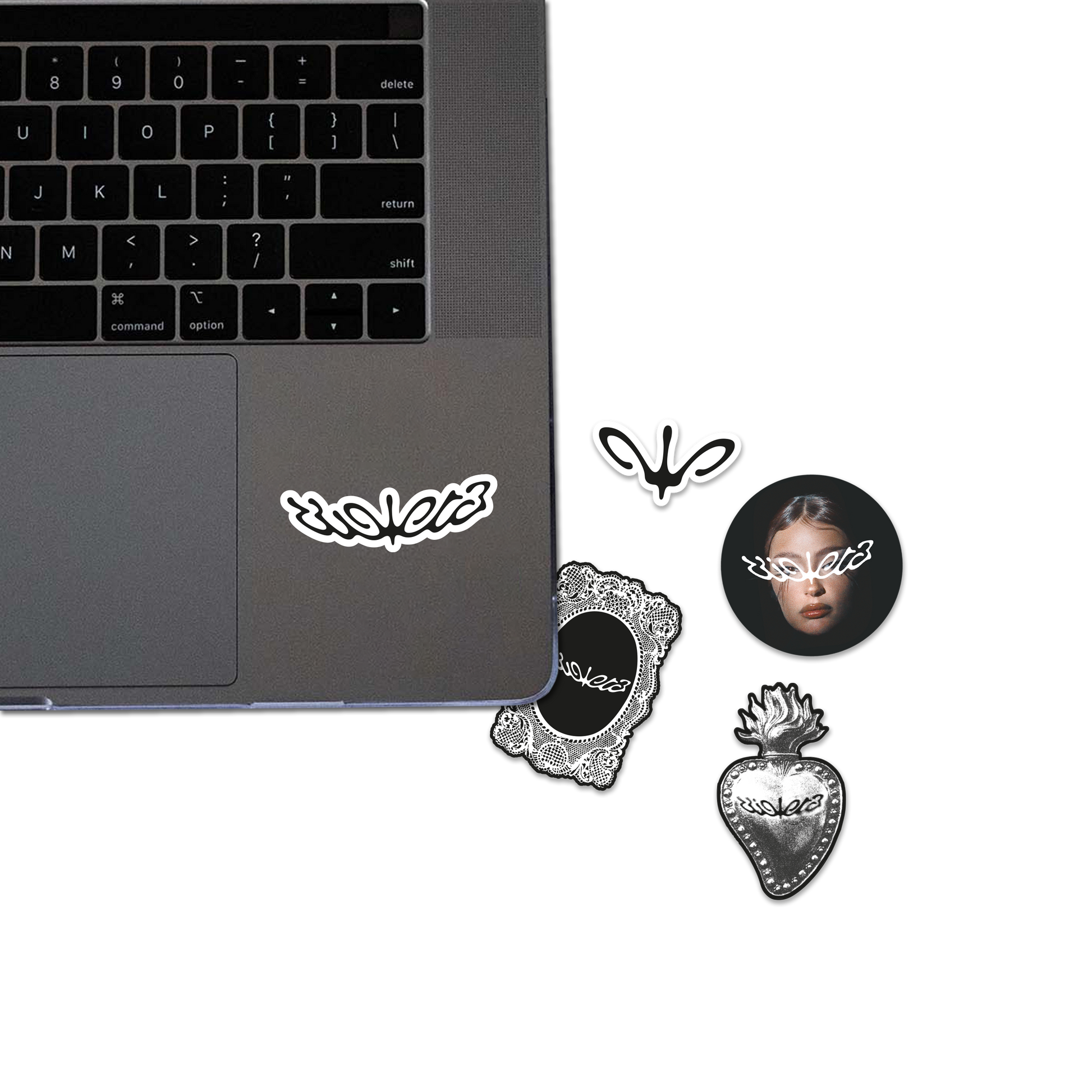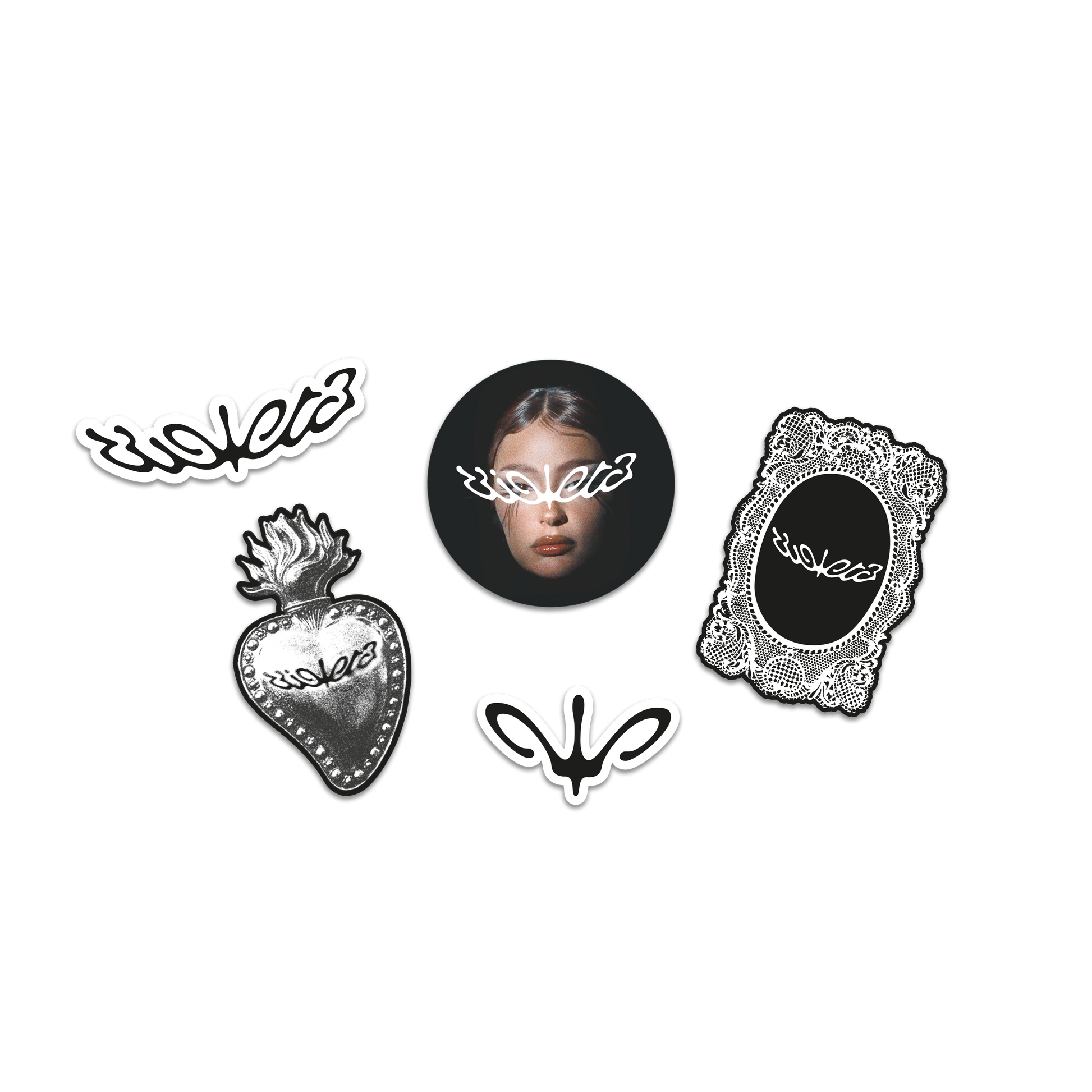 El set de stickers oficial de "VIOLETA" incluye 5 pegatinas con diseños exclusivos.